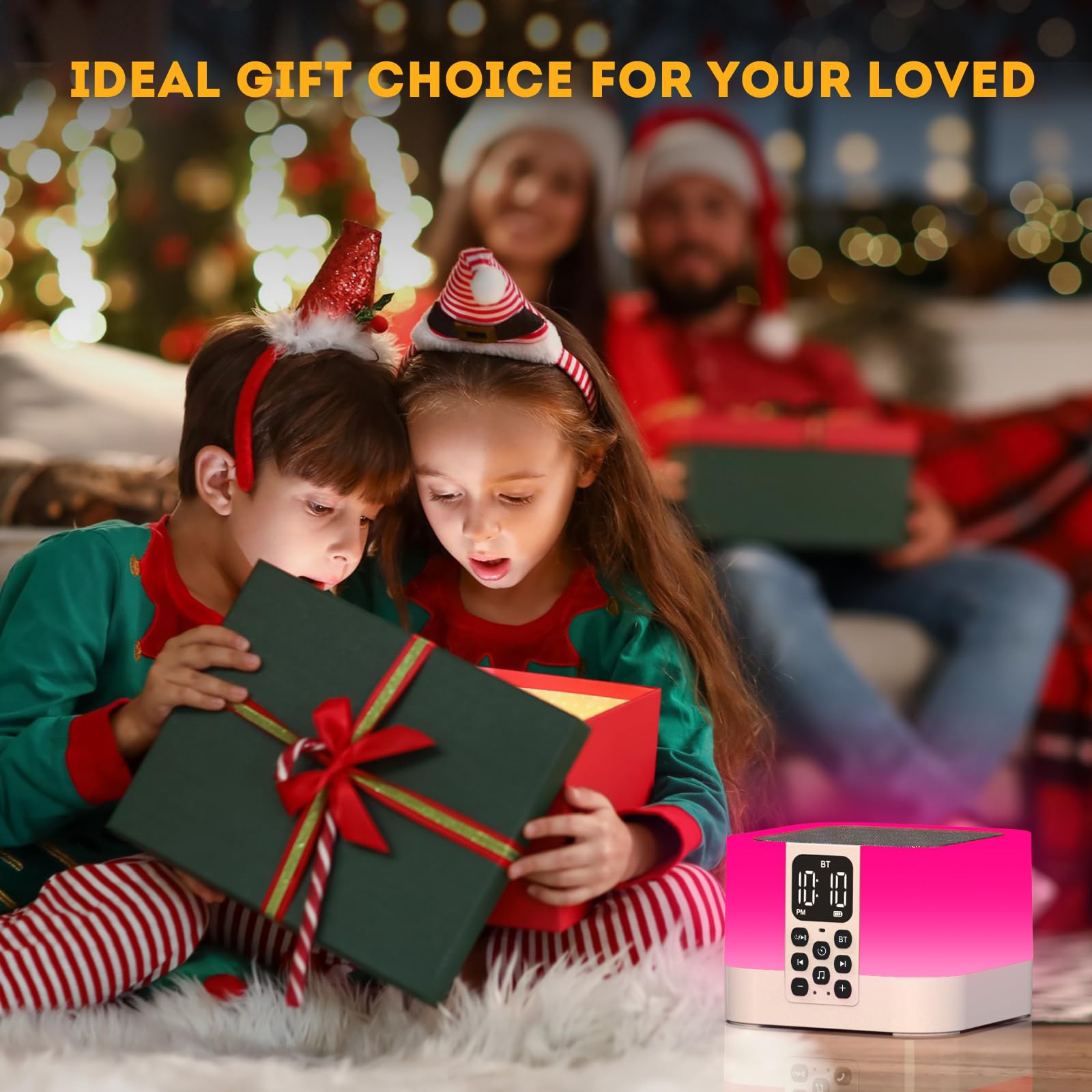 - 4-in-1 Multifunktion: Kombiniert Wecker, Hi-Fi Bluetooth-Lautsprecher, mehrfarbiges Nachtlicht und Soundmaschine in einem Gerät. Spart Platz, reduziert Kabelsalat und bietet mehrere nützliche Funktionen bequem vereint – ideal für zu Hause und unterwegs