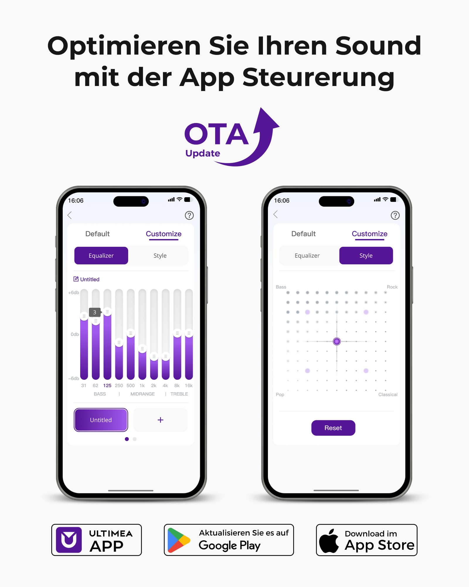 - Erweiterte App-Steuerung mit 10-Band EQ: Passen Sie Ihr Hörerlebnis präzise an – mit der Ultimea App. Sie erhalten Zugriff auf einen 10-Band-Equalizer, 121 Klangprofile und 13 Surround-Stufen. OTA-Updates halten Ihre Heimkino Soundbar stets auf dem neuesten Stand